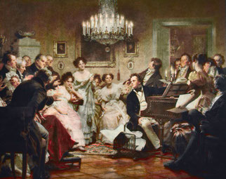 In questa pagina descrivo lo svolgimento di una serata che vede l'unione delle arti visive e musicali, in particolare grazie alla collaborazione di un esperto critico d'arte e un pianista verranno commentate alcune opere pittoriche con collegamenti al periodo storico e agli aspetti musicologici, per completare poi con l'esecuzione al pianoforte di alcuni brani attinenti ai periodi storici commentati.